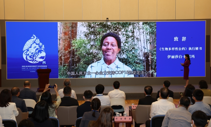 9月26日,“多样世界,生生不息”相约《生物多样性公约》缔约方大会第十五次会议(COP15)系列宣传活动在京启动。生态环境部部长黄润秋出席活动启动仪式并致辞。《生物多样性公约》秘书处执行秘书伊丽莎白·穆雷玛以视频形式致辞。